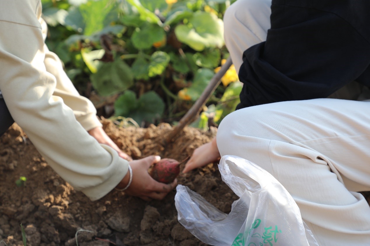 本次劳动以收获红薯为劳动内容,学院心理辅导站负责人给每位学生都分配了任务,首先让学生们用工具将红薯完整的挖出,完成不能造成挖断破损,然后再把红薯运到指定地点。劳动需要参与者合作,在搬运环节中,学生们通过合作将红薯搬运到指定位置并为挖掘出的红薯称重,学生们把红薯放在事先准备好的袋子里,看哪一组搬运的红薯多;同学们在相互交流和合作中完成劳动任务,最后,负责人将红薯分给学生制作以红薯为主题的美味佳肴,引领学生在劳动与实践中感受合作的愉悦,体会劳动的快乐。