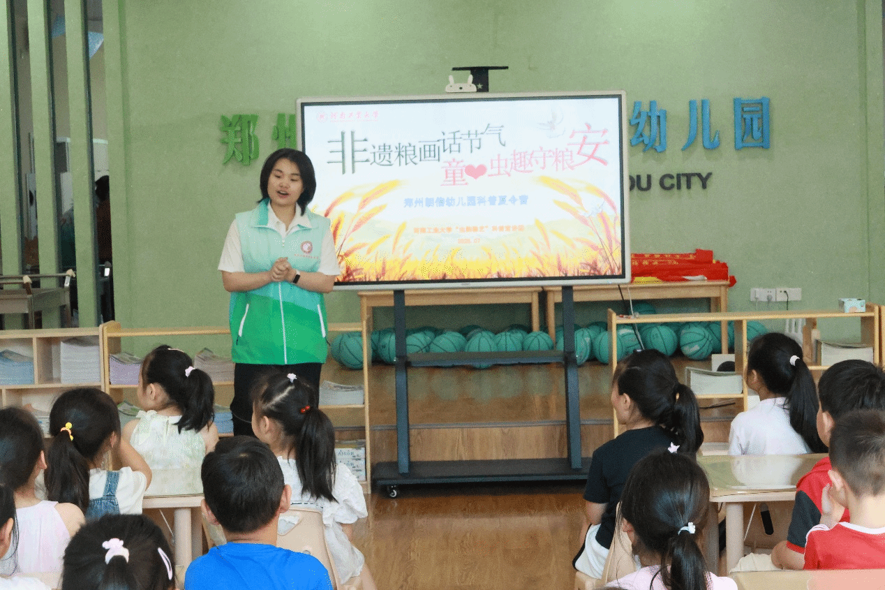 "虫韵粮艺"科普宣讲团走进郑州朗信幼儿园大四班,以"千年粮韵承薪火,科创赋能护粮安"为主题,为35名学龄前儿童带来了一场融合传统文化与科技创新的沉浸式粮食文化科普活动。科普宣讲团成员们通过"害虫知识小课堂""节气粮食画创作""橡皮泥昆虫工坊"三大特色环节,为孩子们带来了一场“听、说、做”一体的特色夏令营活动。