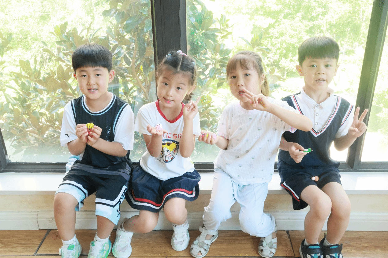 小朋友们展示自己制作的甲虫橡皮泥