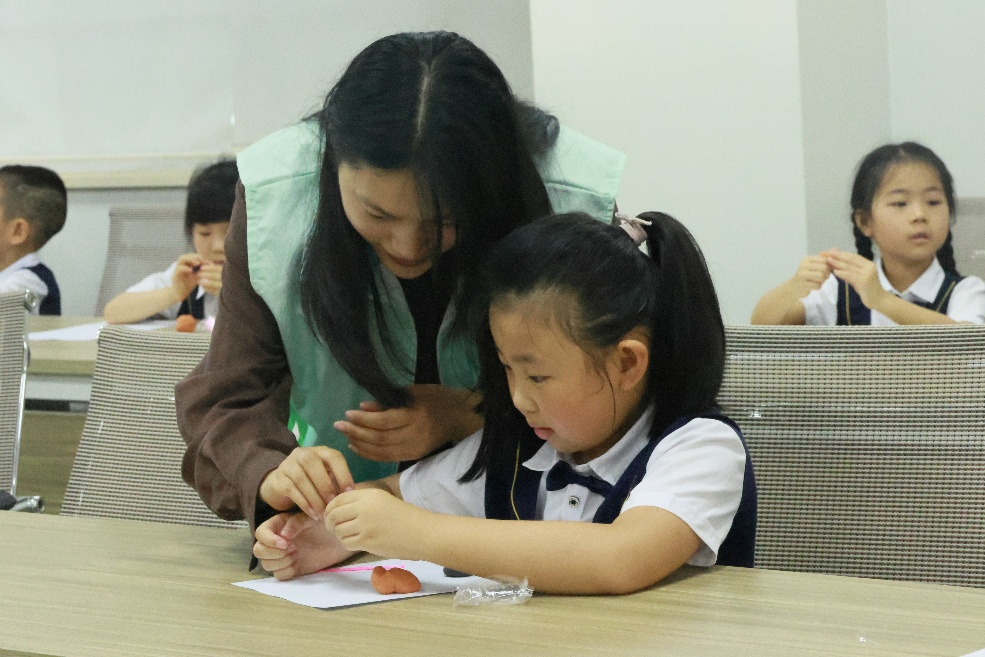 宣讲团成员指导小朋友用橡皮泥制作昆虫模型