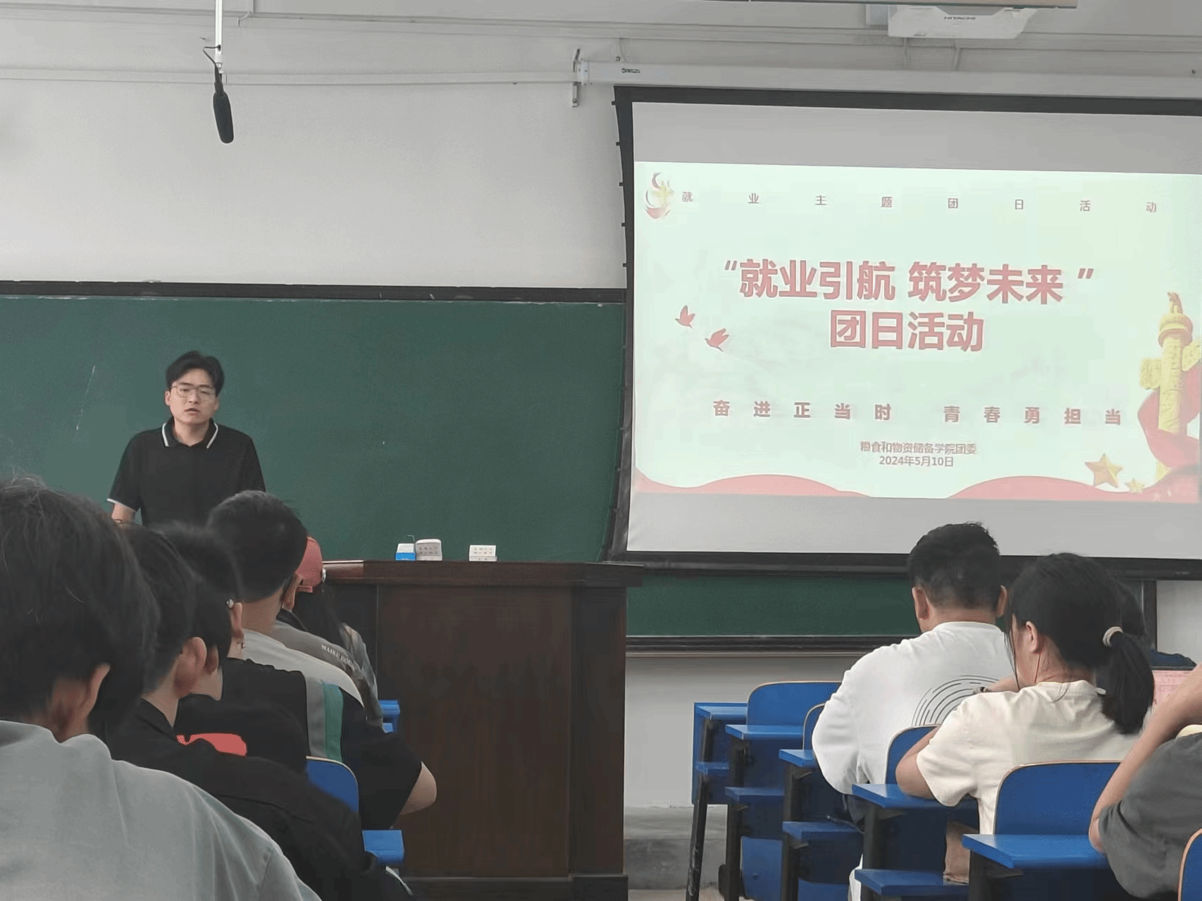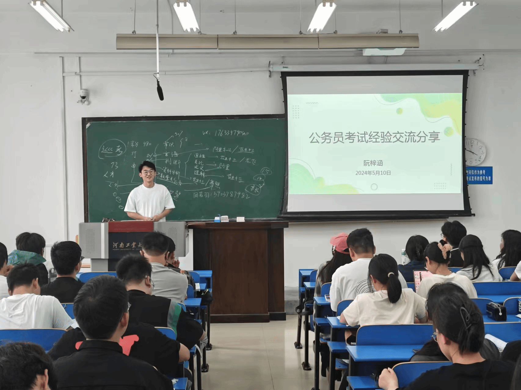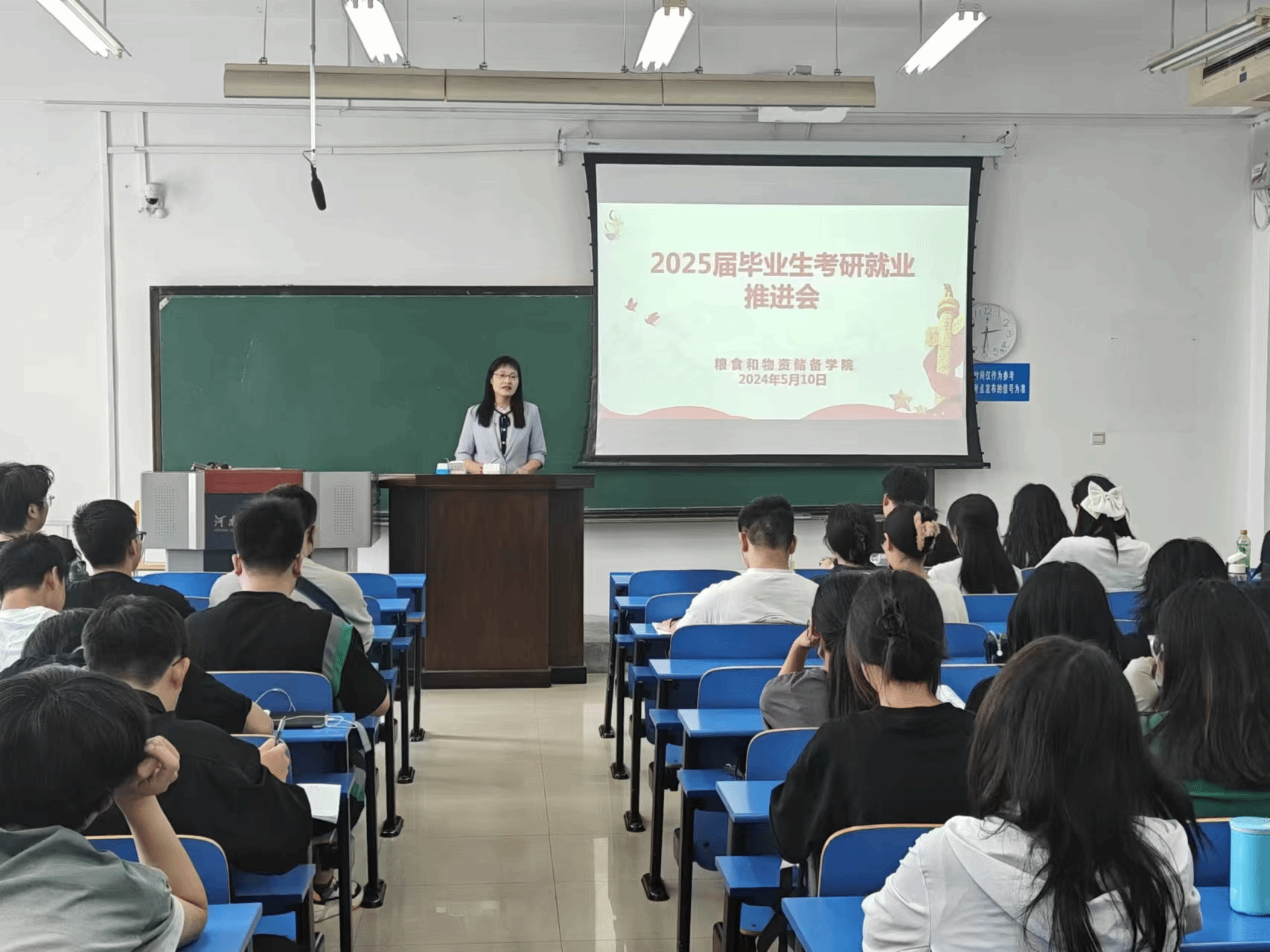 于5月10日在4514教室为2025届毕业生举行了考研就业宣讲会,宣讲会由学工办主任马春艳主持,2025届全体学生参加了宣讲会。