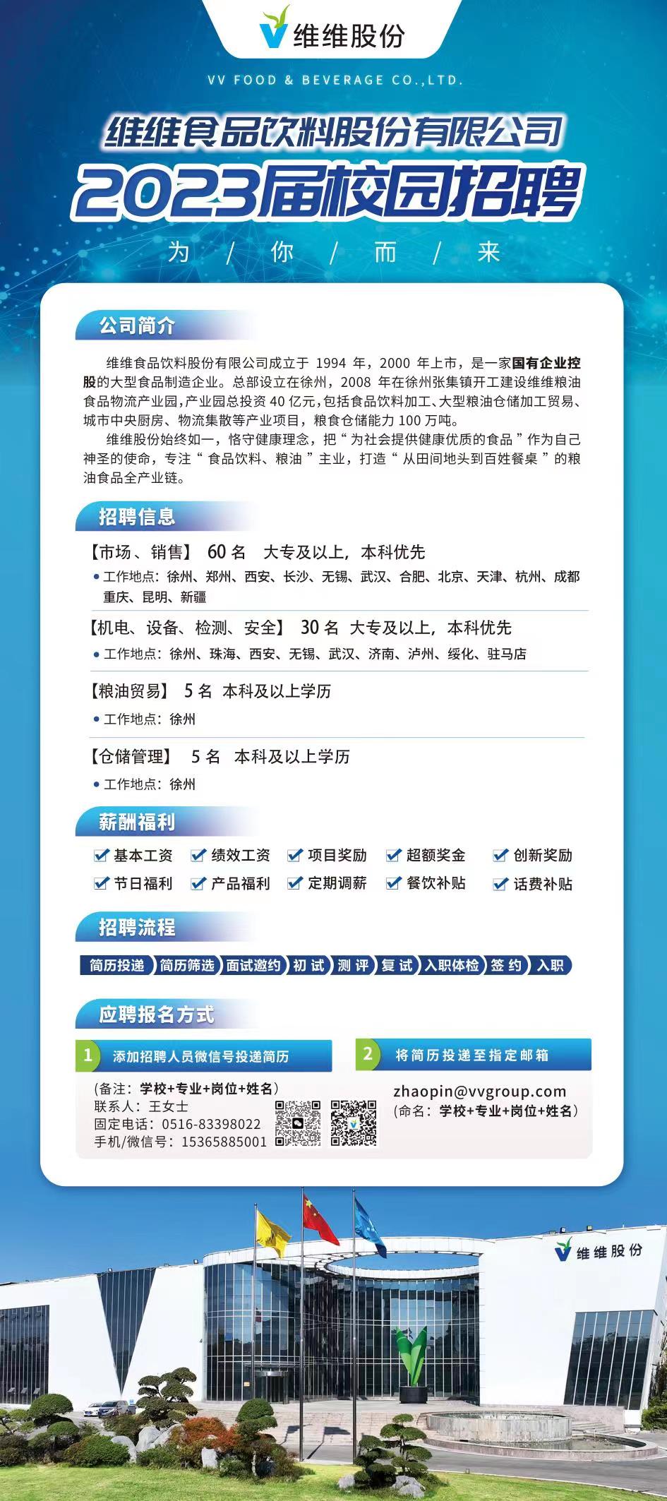 维维食品饮料股份有限公司成立于1994年,2000年上市,是一家国有企业控股的大型食品制造企业。总部设立在徐州,2008年在徐州张集镇开工建设维维粮油食品物流产业园,产业园总投资40亿元,包括食品饮料加工、大型粮油仓储加工贸易、城市中央厨房、物流集散等产业项目,粮食仓储能力100万吨。