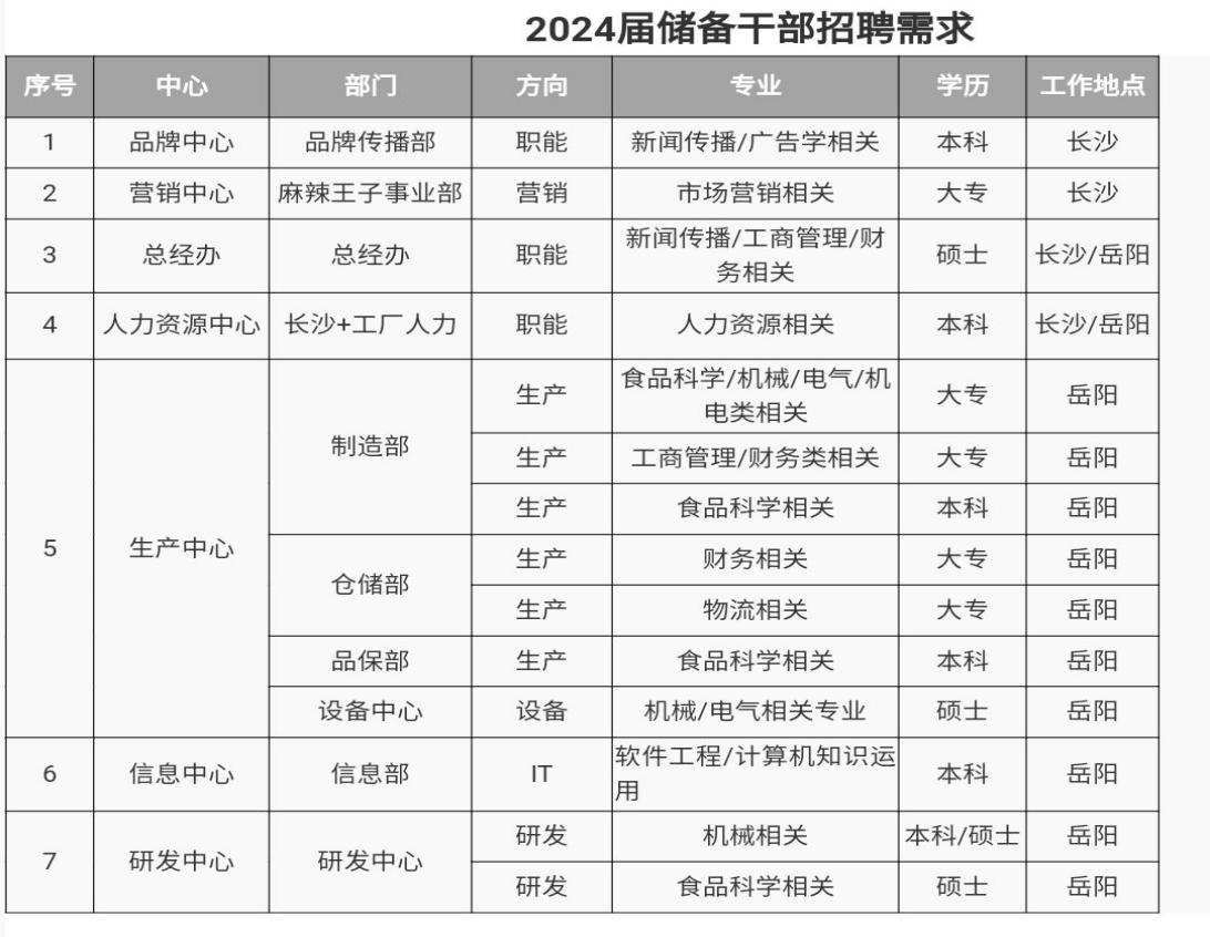 招聘专业:新闻传播学、广告学、市场营销、工商管理、财务管理、食品科学与工程、机械工程、物流管理、软件工程