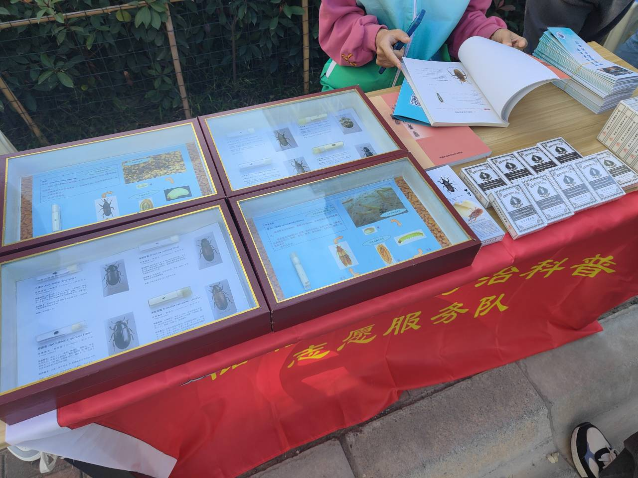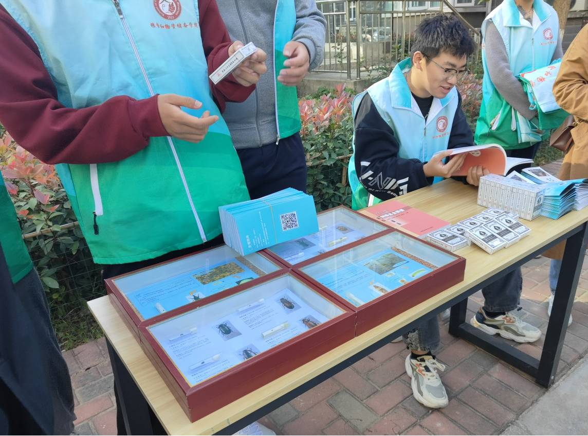 活动现场,通过摆放宣传展架、展示常见储粮害虫标本、发放宣传彩页等方式,向居民群众普及常储粮害虫消杀相关知识,并邀请居民前往我校储藏物昆虫标本馆进行参观。