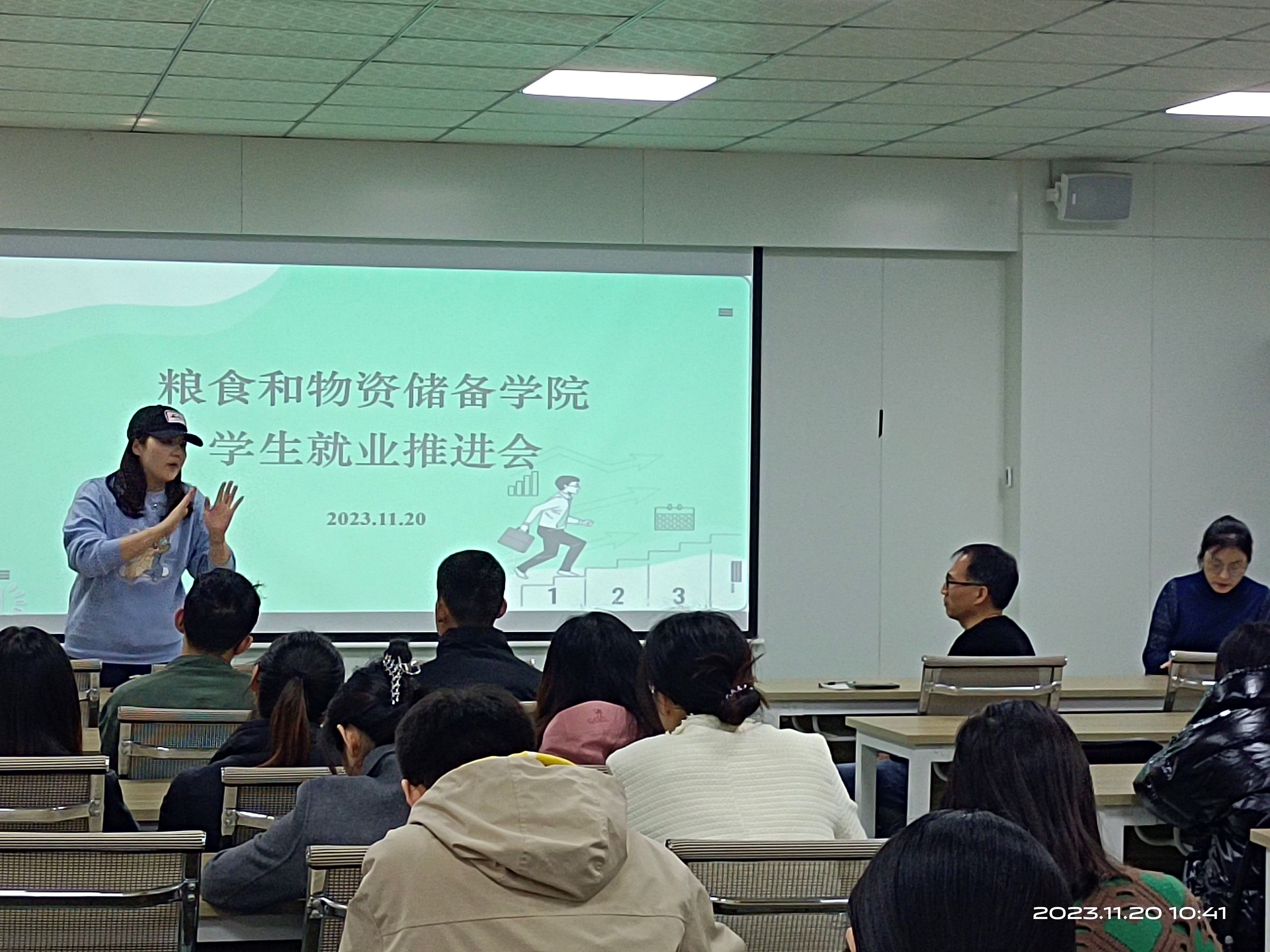 在40202举行全体研究生就业推进会,贯彻落实就业工作相关指示精神,进一步科学研判、分析形势,明确目标任务和工作要求,部署落实就业工作。学院党委副书记梁艳、党政办主任马军锋、学工办副主任马春艳、团委副书记朱子博、全体辅导员、全体毕业班研究生、及研究生导师白春启等参加会议,马春艳主持会议。