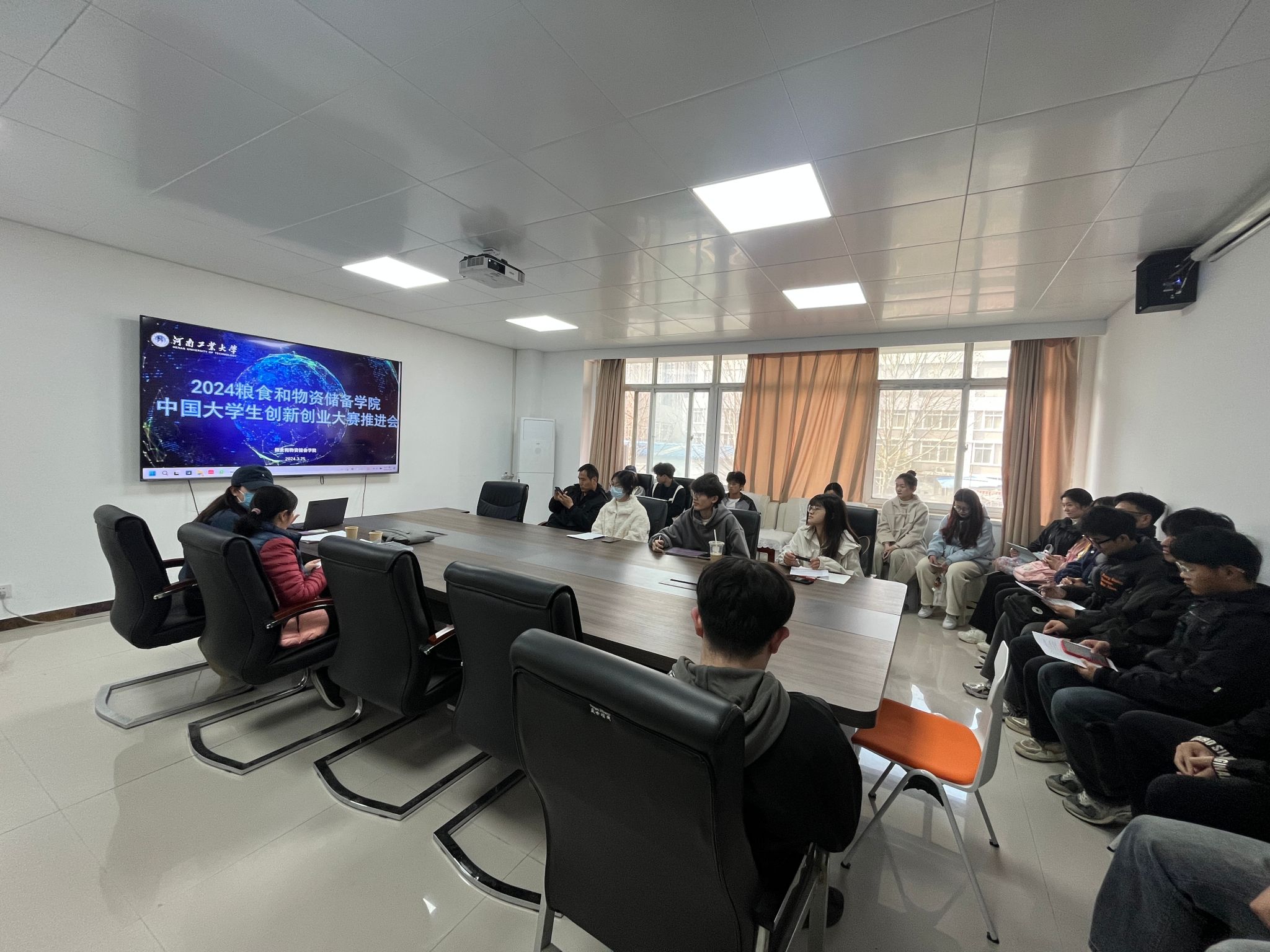 于3月25日召开2024年中国国际大学生创新大赛项目推进会,学院党委副书记、副院长梁艳,中国青年创业导师王伟,全体辅导员出席会议。