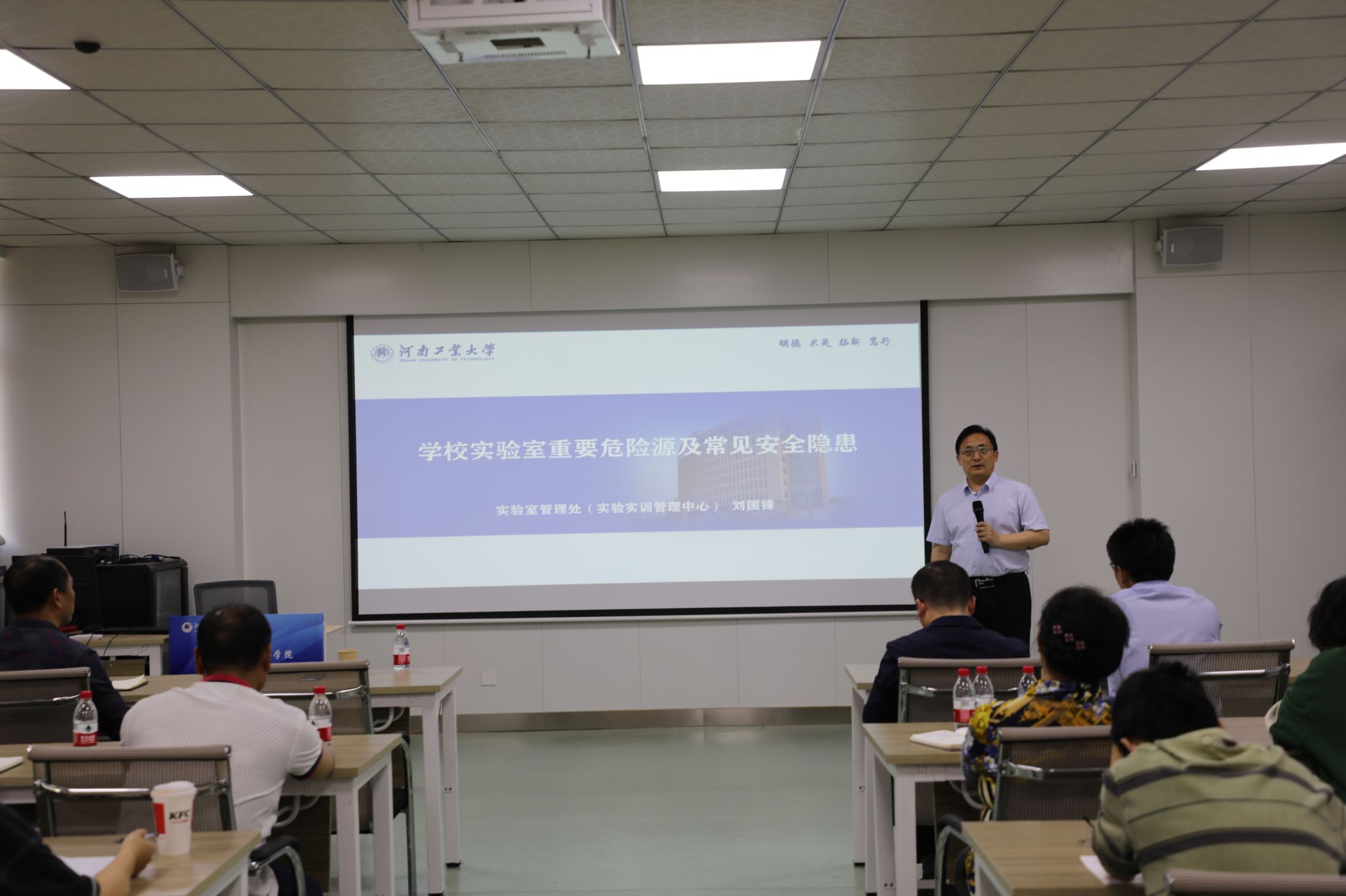 刘国峰以《学校实验室重要危险源及常见安全隐患》为题,做了专题教育报告,他从学校实验室安全责任体系、实验室危险源识别与管控、实验室安全事故案例、实验室常见典型隐患、思考与建议等五个方面进行了报告和工作指导。