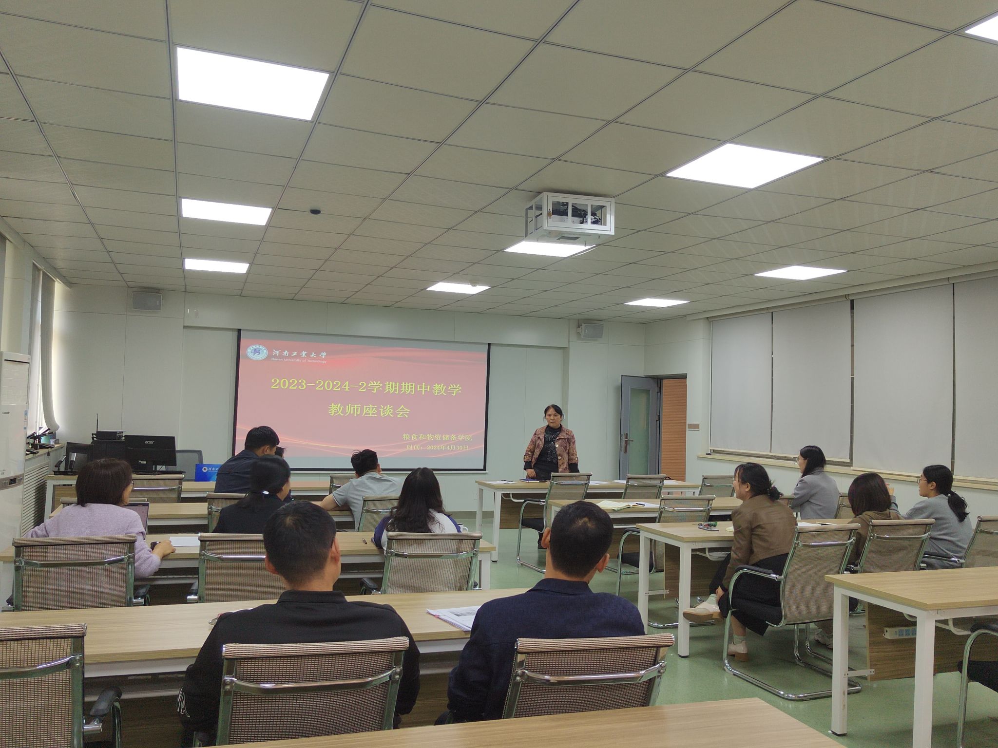 4月30日下午,学院在40202会议室召开期中教学工作教师座谈会。会议由学院教学副院张玉荣主持,学院督导、教学办、教研室主任及全体专业教师参加会议。