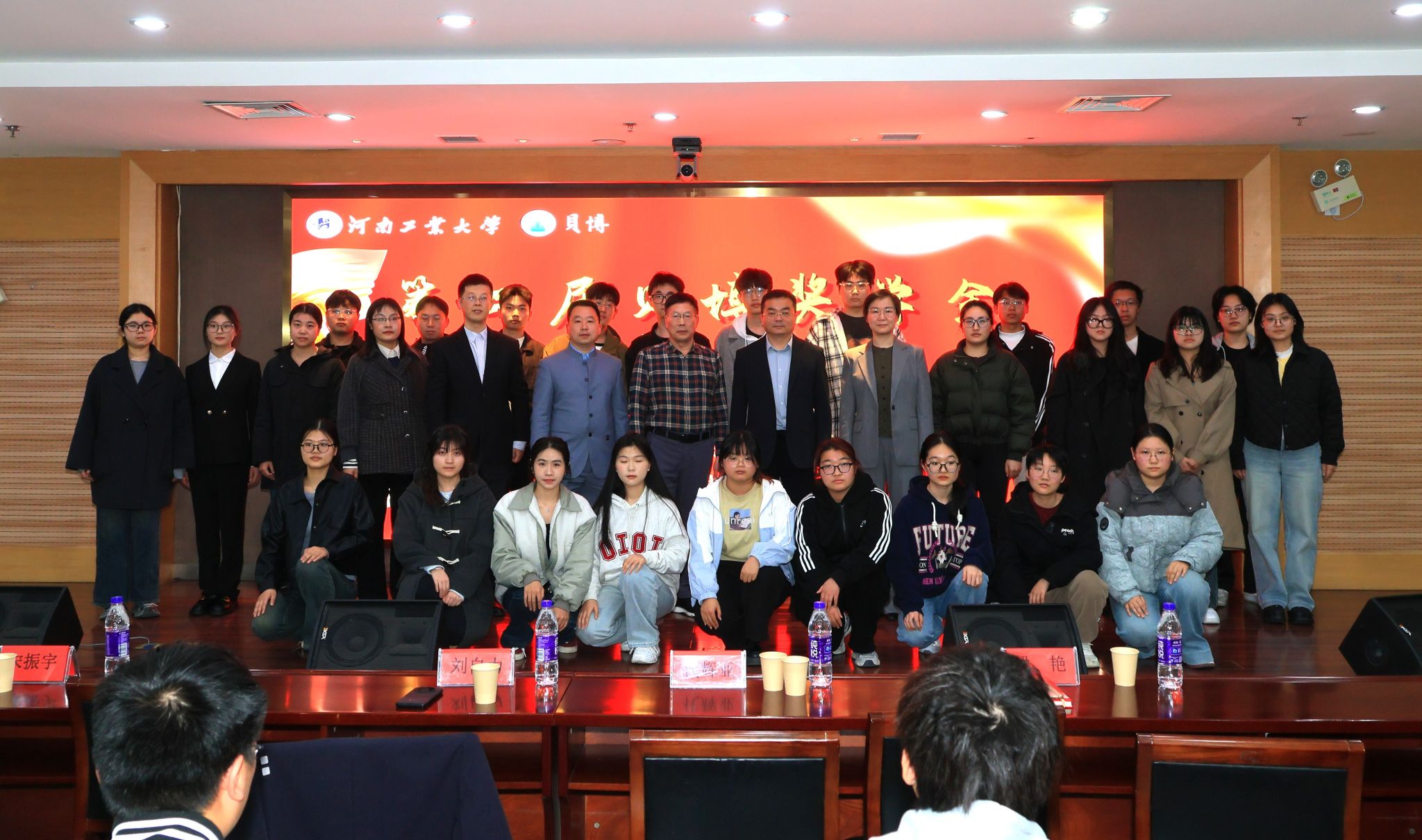第二届贝博奖学金颁奖典礼在行政楼D102报告厅隆重举行,郑州贝博电子股份有限公司(以下简称贝博公司)总经理刘自力、销售总监宋振宇、宣传设计张芊芊,学院党委书记代辉亚、党委副书记梁艳、学工办主任马春艳、团委副书记刘宇畅及2023级、2024级全体学生参加了颁奖典礼。典礼由马春艳主持。