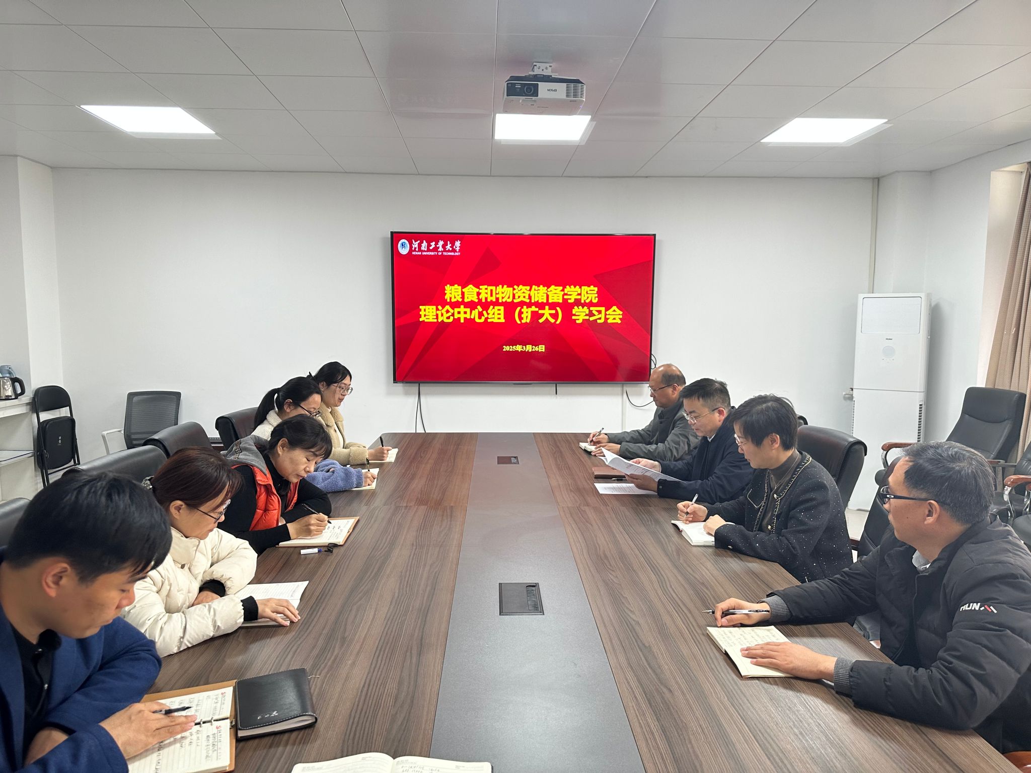 党委在40-212会议室召开理论学习中心组(扩大)学习会,学院领导班子成员、各党支部书记、科室负责人参加会议,学院党委书记代辉亚主持会议。