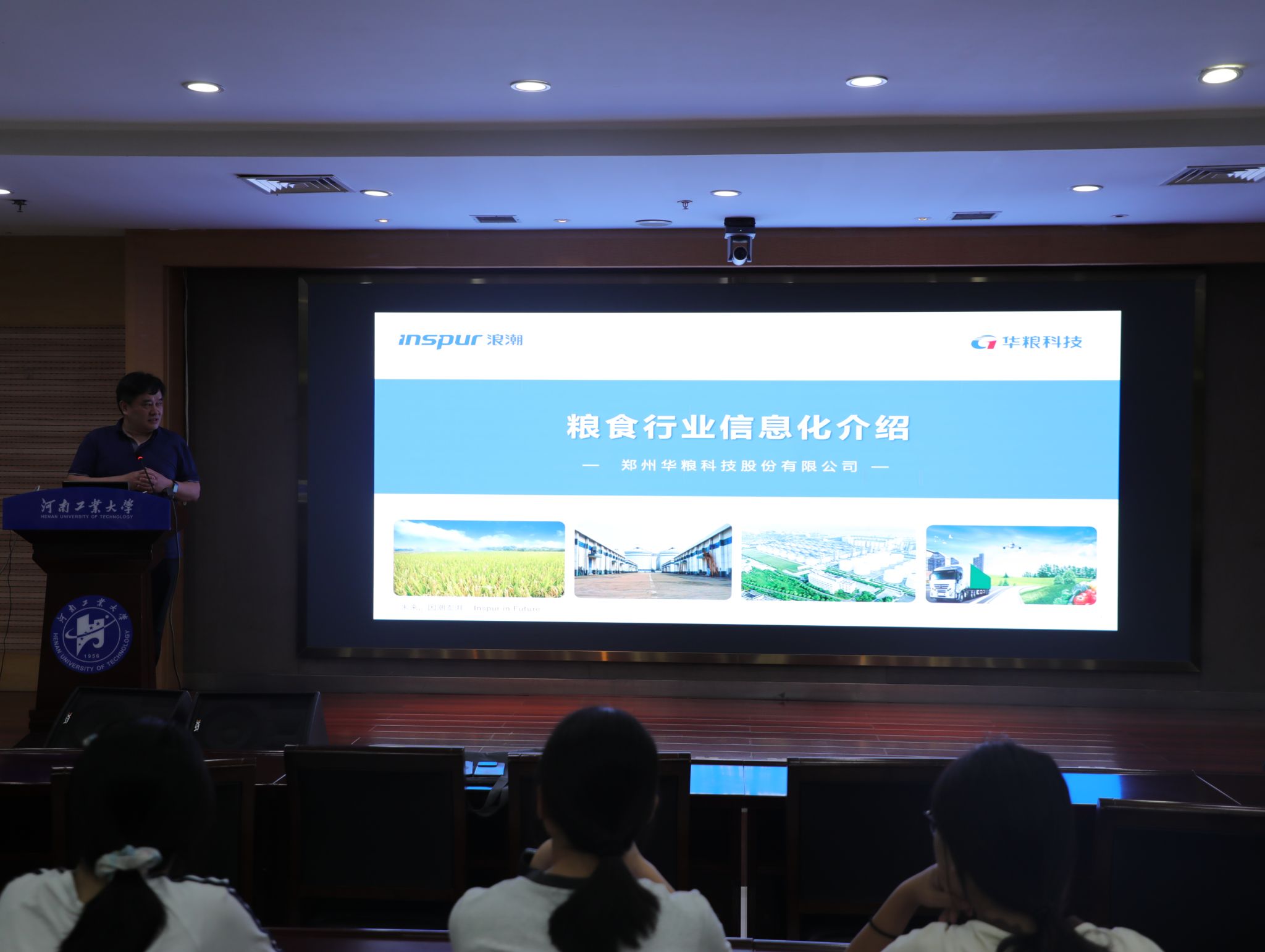 典礼结束后,学院开展了品牌活动“行业大咖面对面”,邀请郑州华粮科技股份有限公司副总经理胡东为新生们开启“开学第一课”。胡东结合粮食储藏行业现状,向同学们介绍了智能化、数字化、自动化技术在现代储粮工作当中的应用,并为同学们展示了数字储粮、智能储粮目前的高精尖端成果。胡东鼓励同学们要勇于探索,磨练技术,不断攀登学术高峰,将所学知识更好的应用在仓储实践当中,成长为出色的新一代“粮储人”。