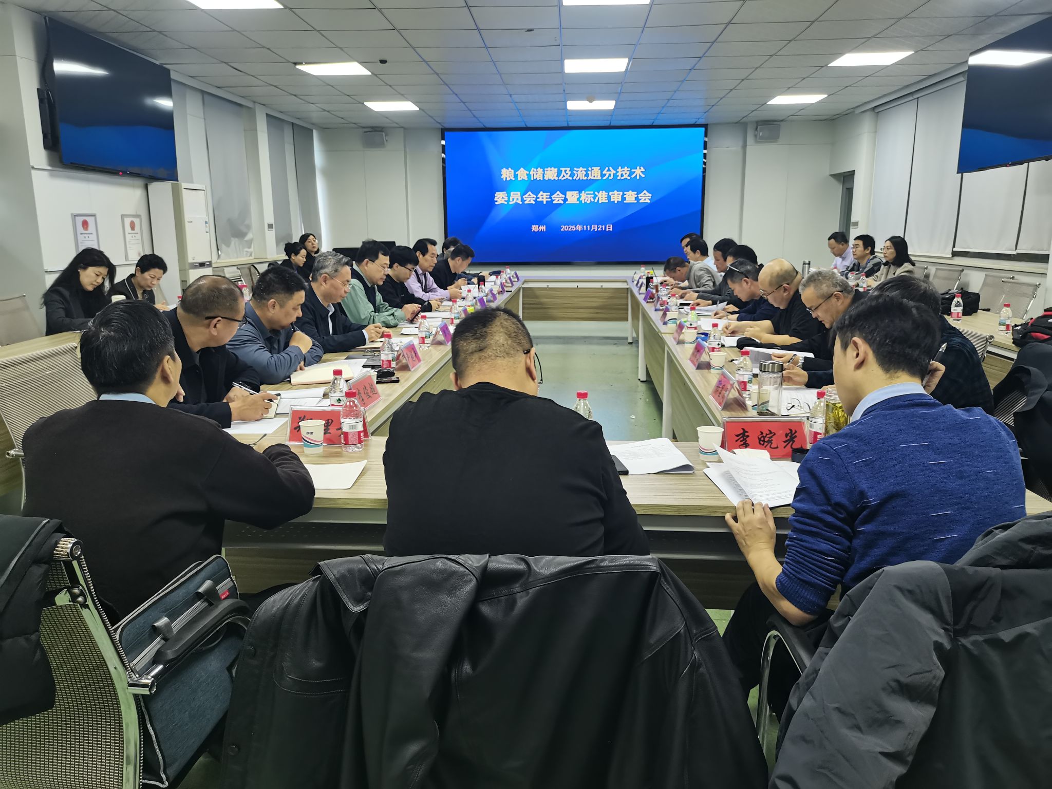 11月21日,受全国粮油标准化技术委员会委托,全国粮标委粮食储藏及流通分技术委员会年会暨标准审查会在我校召开。来自全国粮油标准化技术委员会秘书处、国家粮食和物资储备局科学研究院、中储粮成都储藏研究院有限公司、国家信息中心、北京国贸东孚工程科技有限公司、中国计量大学、辽宁省粮食科学研究所等单位的委员、粮食储藏及流通分技术委员会秘书处成员及各标准起草组成员共40余人参加了会议。我校原校长、全国粮标委粮食储藏及流通分技术委员会主任委员卞科出席会议并讲话。会议由分委会副主任委员、郑州中粮科研设计院有限公司李杰研究员主持。